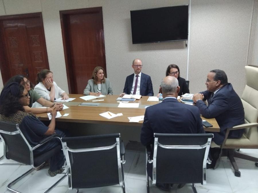عقد الأمين العام لوزارة لوزارة الشؤون الاقتصادية والتنمية السيد / يعقوب ولد أحمد عيشه اليوم بمقر الوزارة، اجتماعا رفيع المستوى مع بعثة من المكتب الدولي لمكافحة المخدرات والجريمة ، وذلك لبحث سبل تعزيز التعاون الأمني والاستراتيجي المشترك.
