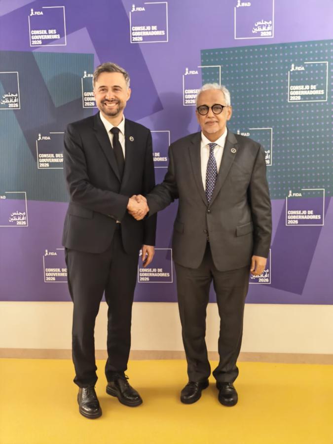 عقد معالي وزير الشؤون الاقتصادية والتنمية، الدكتور عبد الله ولد سليمان ولد الشيخ سيديا، اليوم الثلاثاء في العاصمة الإيطالية روما، اجتماعا ثنائيا رفيع المستوى مع رئيس الصندوق الدولي للتنمية الزراعية، السيد ألفارو لاريو، الذي كان محاطا بعدد من معاونيه، وذلك على هامش أعمال الدورة 49 لمجلس محافظي الصندوق.